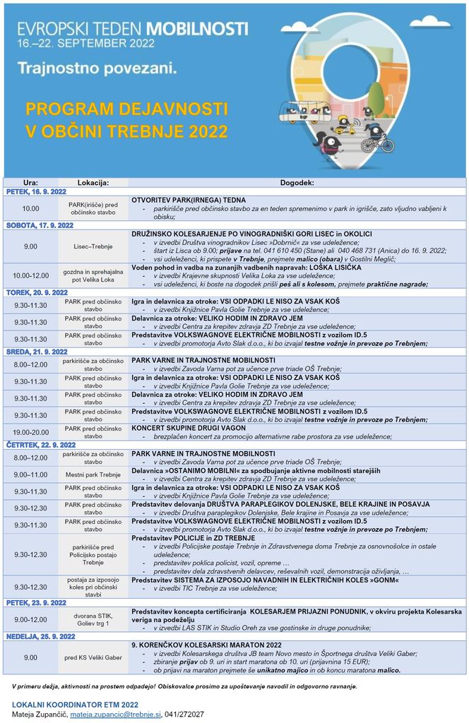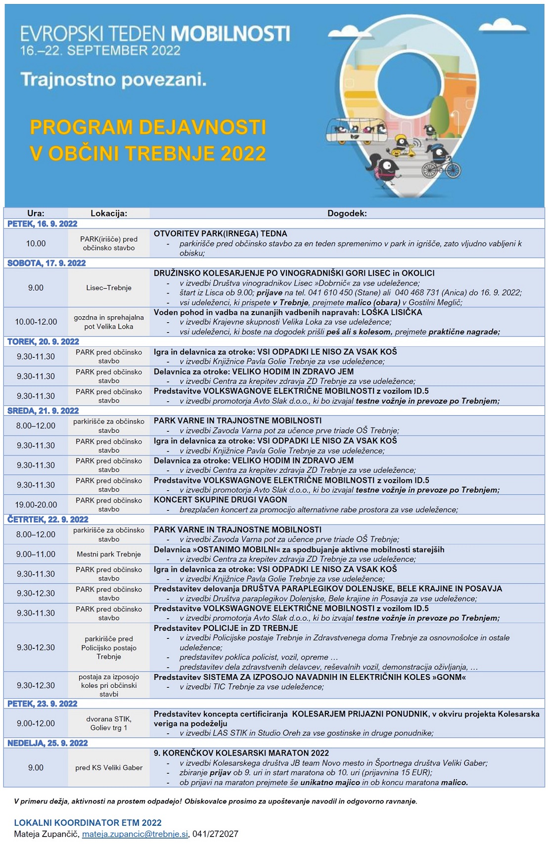 PROGRAM DEJAVNOSTI V OBČINI TREBNJE 2022