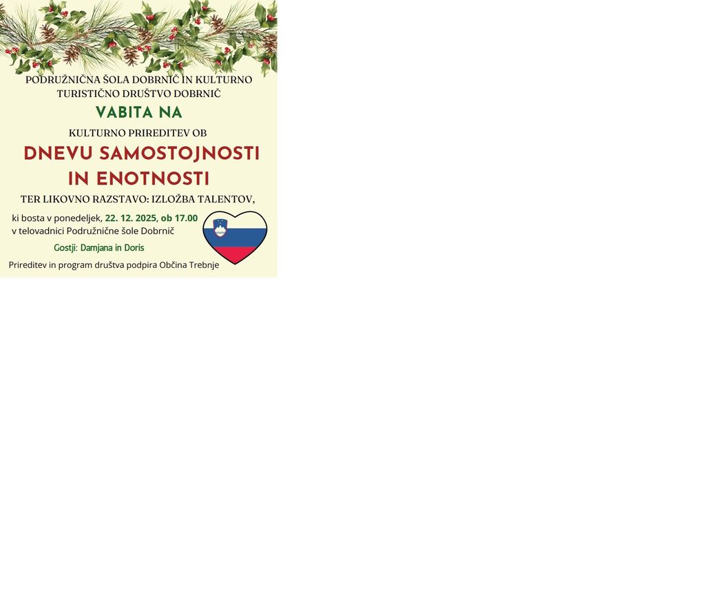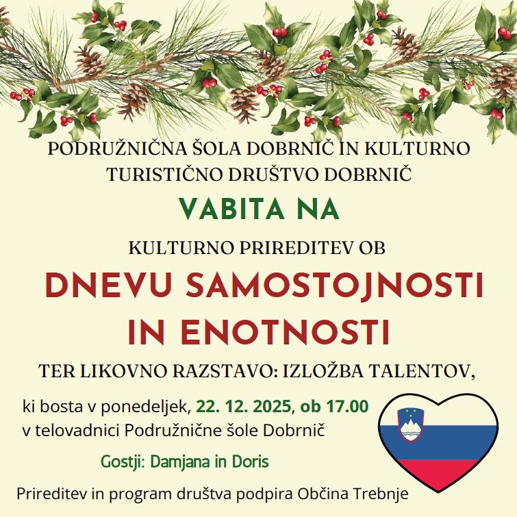 Organizator: KULTURNO TURISTIČNO DRUŠTVO DOBRNIČ in PODRUŽNIČNA ŠOLA DOBRNIČ