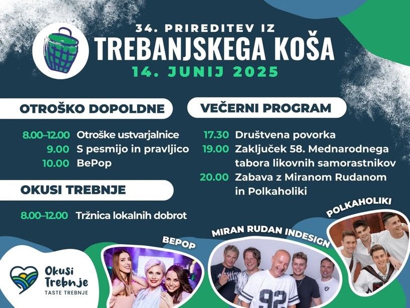 Umetniki, udeleženci 58. Tabora likovnih samorastnikov Trebnje bodo v sklopu 34. prireditve Iz trebanjskega koša skupaj z otroki ustvarjali na prostem, v mestnem parku Trebnje.