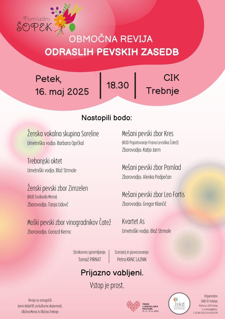Prireditev omogočajo Javni sklad RS za kulturne dejavnosti Območna izpostava Trebnje, Občina Mirna in Občina Trebnje.