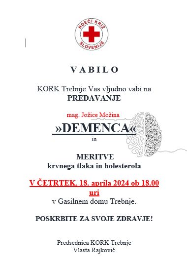 Organizator: Rdeči križ Slovenije OZ Trebnje