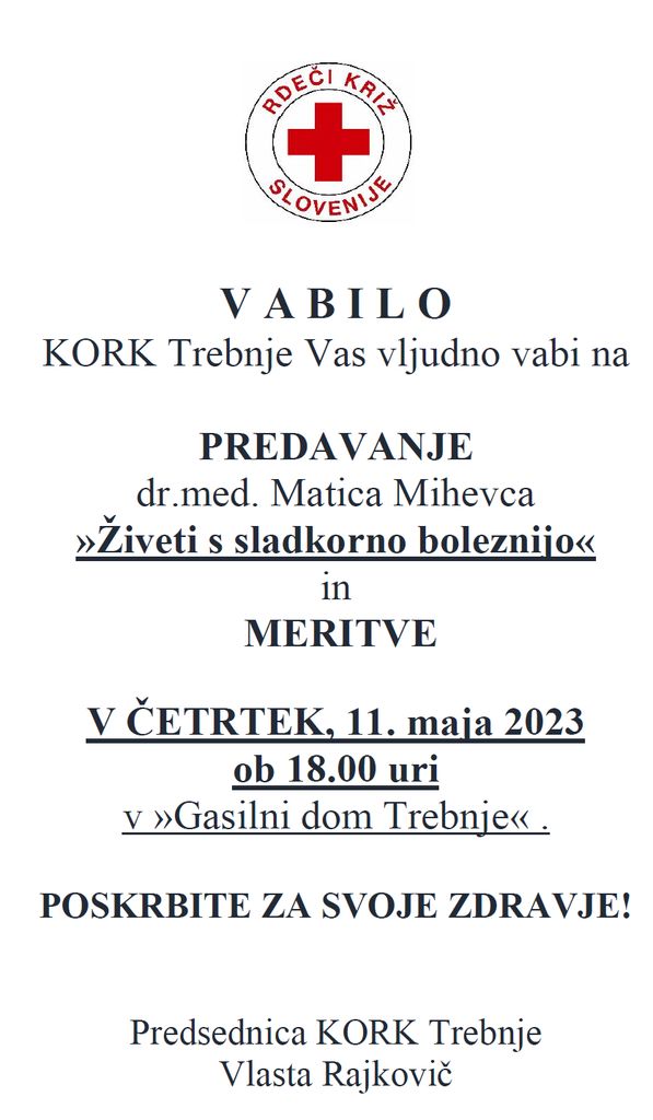 Organizator: Rdeči križ Slovenije OZ Trebnje