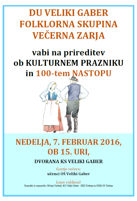 Organizator: FOLKLORNA SKUPINA DU VELIKI GABER VEČERNA ZARJA