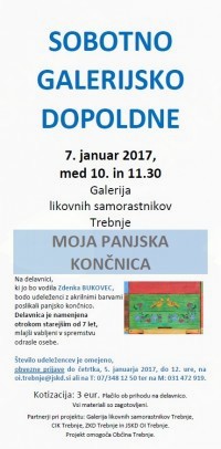 V sodelovanju z JSKD OI Trebnje otroke v soboto, 7. januarja 2017, ob 10. uri vabimo na delavnico Sobotno galerijsko dopoldne: Moja panjska končnica.