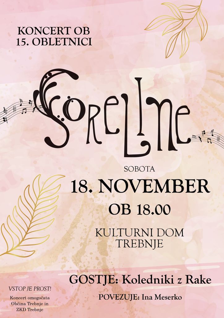 Vljudno vabljeni na koncert ob 15. obletnici pevskega zbora Soreline, ki bo potekal v soboto, 18. 11. 2023 ob 18.00 v Kulturnem domu Trebnje.