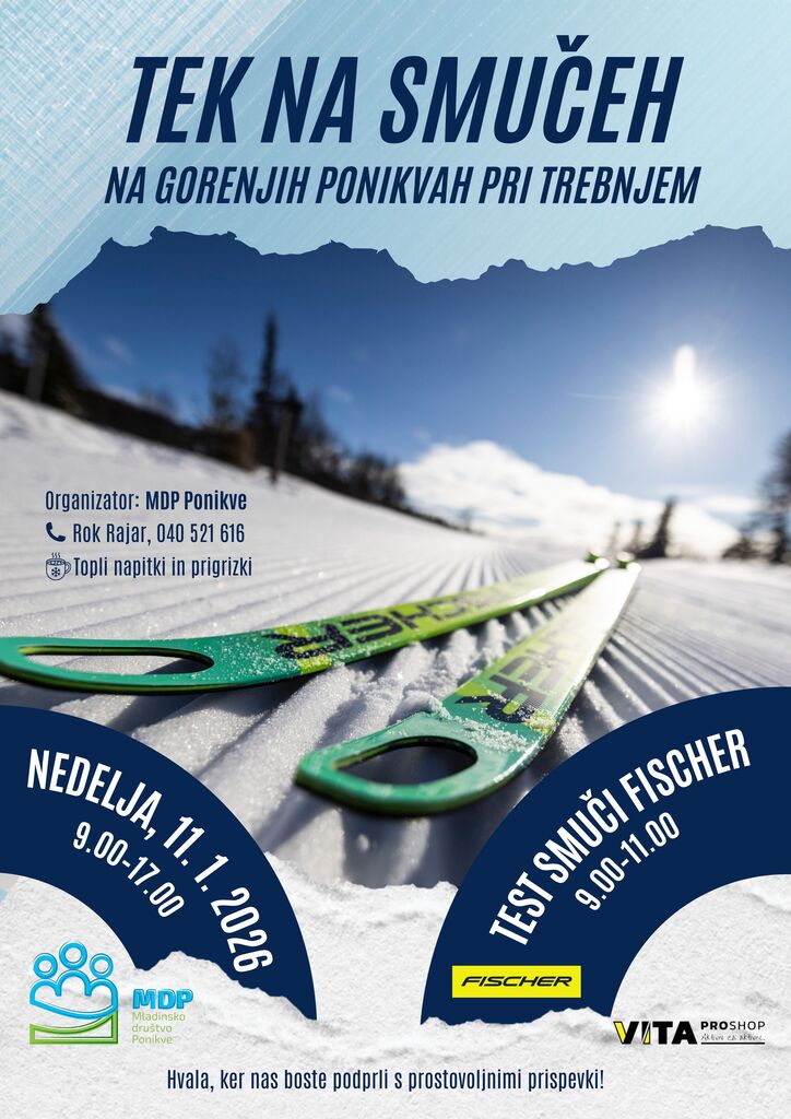 Posebej vabljeni v nedeljo, 11. januarja 2026, ko pripravljajo športni dan z možnostjo brezplačnega preizkusa tekaških smuči Fischer, ki jih zagotavlja podjetje VITA Trebnje.