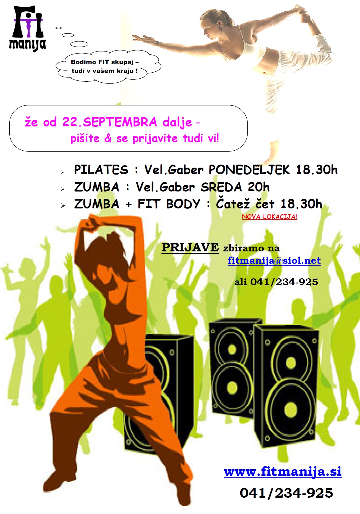 Vabljeni na uvodne ure vadbe zumbe in FIT body. Ura je brezplačna.