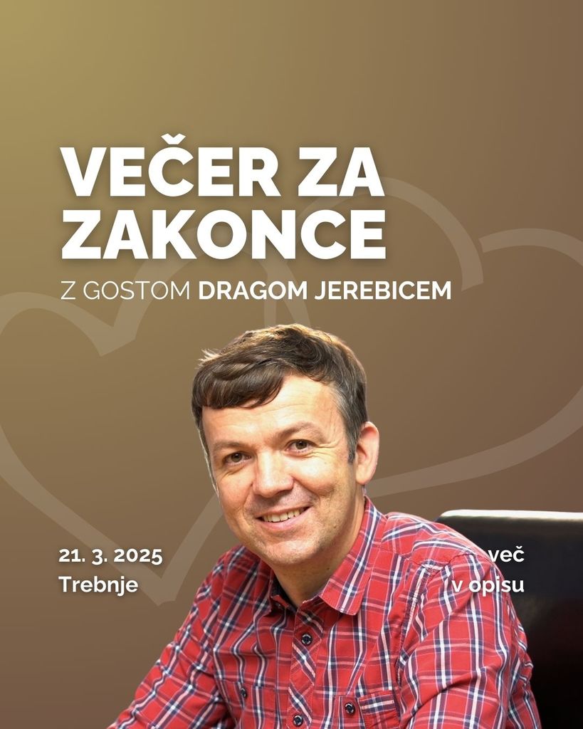 VEČER ZA ZAKONCE z Dragom Jerebicem v petek, 21. marca 2025, ob 18.30, v Kulturnem domu Trebnje, z naslovom "Kako se izogniti napadanju in umikanju v zakonskem odnosu?" Lepo vabljeni!