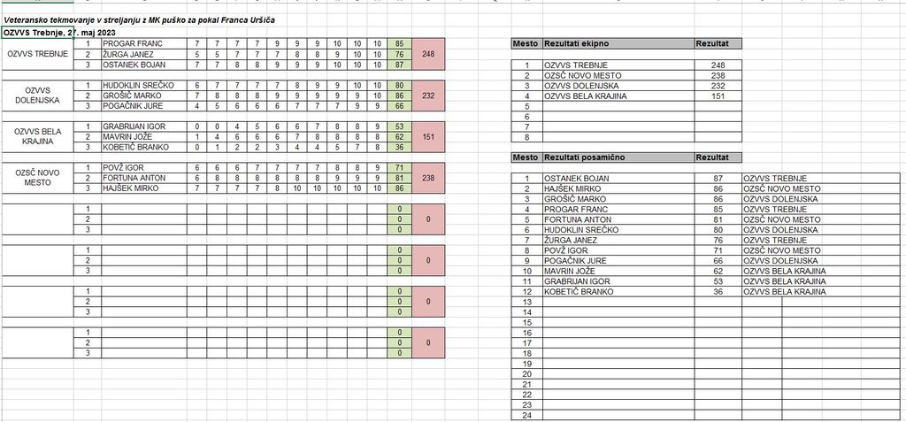 OZVVS Trebnje smo uspešno izvedli 11. tekmovanje v streljanju z malokalibrsko puško za pokal Franca Uršiča. Tekmovanje je potekalo v soboto, 27. 5. 2023. Tekmovanja so se udeležile ekipe OZVVS Trebnje, OZVVS Dolenjska, OZVVS Bela krajina in OZSČ Novo mesto, Tekmovanje je potekalo v sproščenem in družabnem vzdušju, kljub temu pa je bilo čutiti dovolj tekmovalnega naboja. Tekmovanje je bilo ekipno in posamezno. Najboljšim ekipam in posameznikom je Županja Občine Trebnje, gospa Mateja Povhe podelila pokale in medalje. Najboljše tri ekipe so prejele pokale in medalje, najboljšim posameznikom pa so bile podeljene medalje.