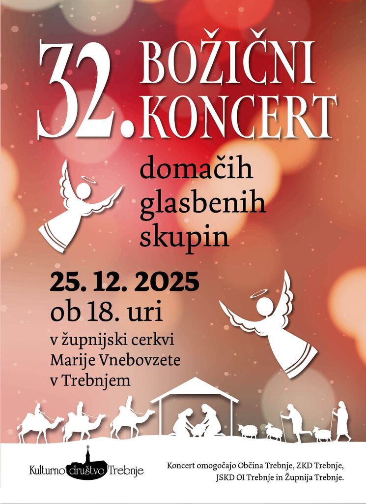 Lepo vabljeni na tradicionalni 32. Božični koncert, ki bo 25. decembra 2025, ob 18h v župnijski cerkvi Marije Vnebovzete v Trebnjem.