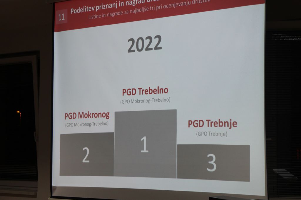 Na skupščini so podelili tudi nagrade prvim trem društvom: Trebelno, Mokronog in Trebnje, ki so pri vsakoletnem ocenjevanju društev (vključene vse aktivnosti društva celotnega leta), dosegla največ možnih točk.