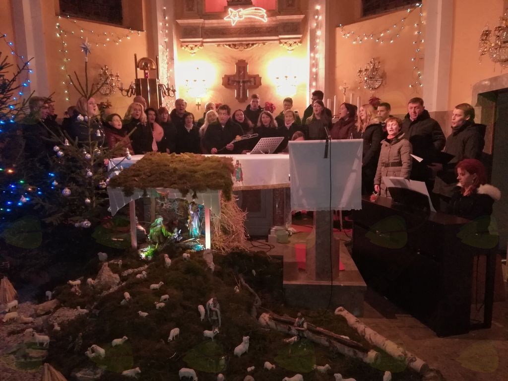 V tihi temni noči, tam na hribčku nad Gabrom pesem je donela. Prečudoviti božični koncert, ki so ga pripravili moški pevski zbor Prijatelji iz Šentvida pri Stični skupaj z gosti; domačim cerkvenim ženskim pevskih zborom, citrarko Evo Medved, pianistko Špelo Sellak in solisti Ksenijo Kastelic, Vesno Koželj, Dominikom Kastelicem in Robijem Markovičem. Božični prazniki so presežki v vseh pogledih za naša čutila. Soj tisoče lučk, prečudovito okrašena drevesa, vasi, ulice in mesta so čudovita paša za naše oči. Omamni vonji po klinčkih, cimetu, jabolkih, pomarančah, kuhanem vinu dodajo svojo čarobnost in tako ta praznik občutimo tudi z nosom. Bogato obložene mize z domačimi dobrotami razvajajo naše brbončice v ustih. In vsekakor si ne moremo in ne znamo predstavljati božičnih praznikov brez prepevanja božičnih pesmi. Obiskovalci koncerta so lahko uro in pol uživali v čudovitih pesmih z božičnimi napevi. Vendar božič ni za vse tako lep, barvit in družaben. Tako so na naša srca potrkali tako v pesmi ko v vezni besedi. Opozorili so nas tudi na osamljenost in stisko posameznikov, ki v času božično-novoletnih praznikov svojo stisko še posebej občutijo.