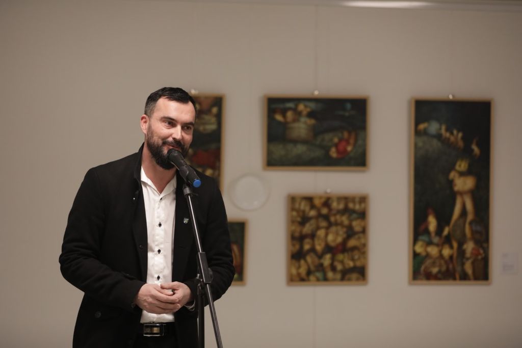 Umetnikov izviren pristop do tehnike kolaž, mojstrska realizacija bogastva tekstur, dinamične kompozicije in pripovednost protagonistov umetniških del so samo nekatere izmed točk, ki so na odprtju vzbudile radovednost obiskovalcev. Dodatna obogatitev programa je bil avtorjev prispevek v obliki krajšega intervjuja o njegovi ustvarjalni poti. Razstavo je odprl Tomaž Ramovš, župan Občine Šentrupert, slovesnost pa so popestrili z glasbenimi utrinki Glasbene šole Trebnje.