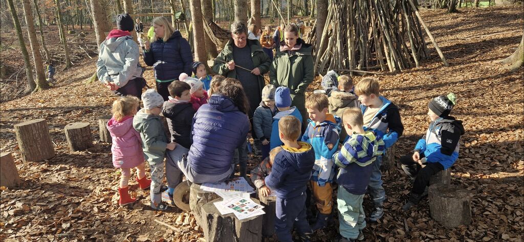 Novembrsko dopoldne smo skupaj z zunanjim sodelavcem Urošem Jelenom, kolegicama iz vrtca Sonček Šmarjeta, najstarejšo skupino otrok iz vrtca ter učenci 1. razreda preživeli v gozdni igralnici. Dopoldne je minilo v prijetnem vzdušju učenja, gibanja, raziskovanja narave in igre.