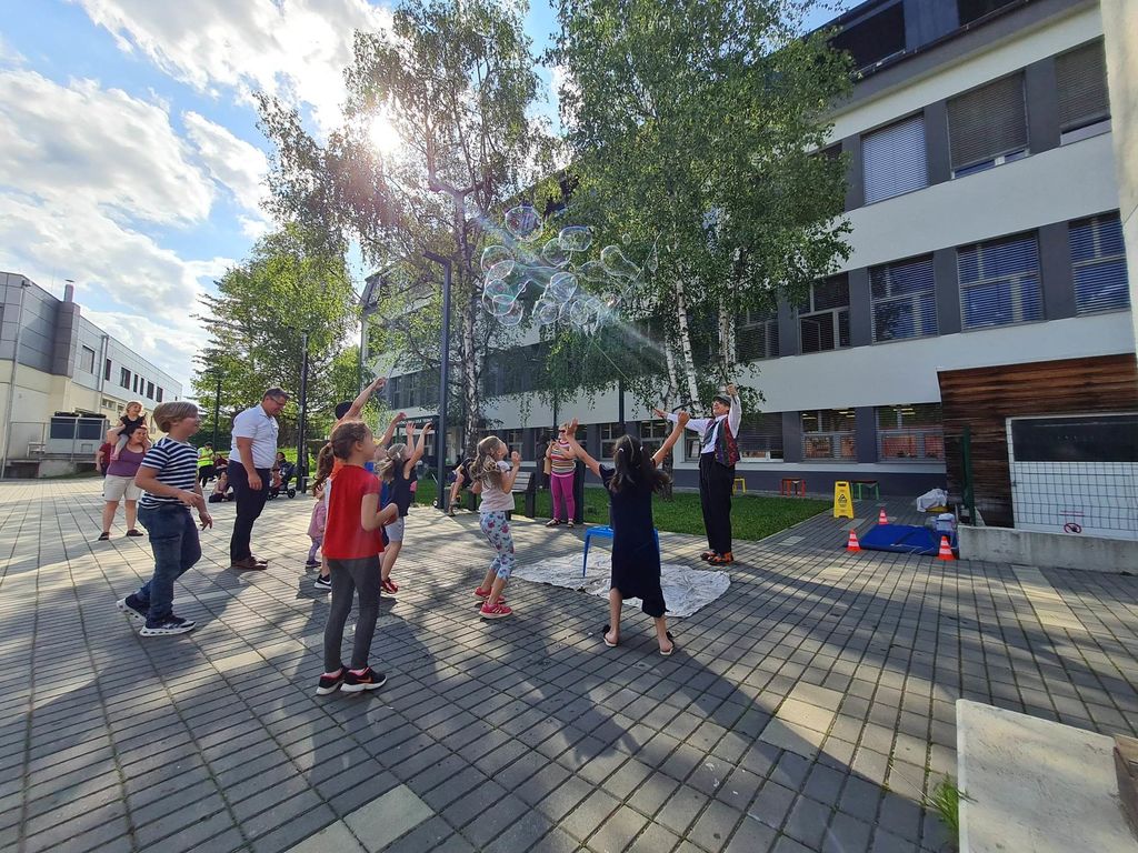 Sledila je delavnica milnih mehurčkov v izvedbi Teatra Cizamo, na kateri so se zabavali predvsem najmlajši, ki so neutrudno lovili mehurčke vseh velikosti in oblik.