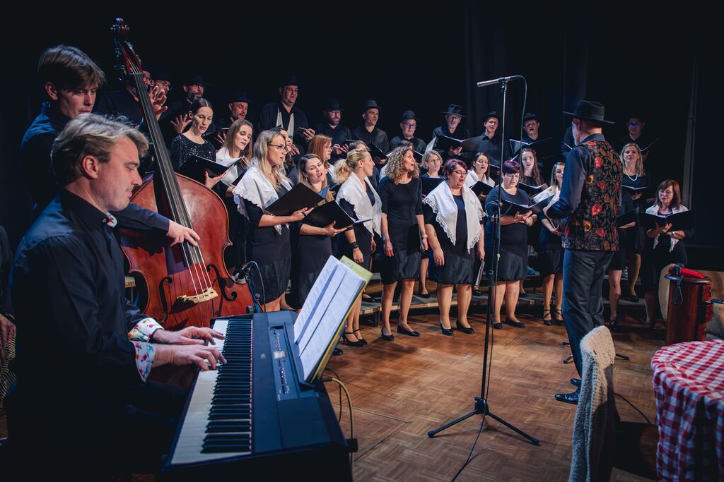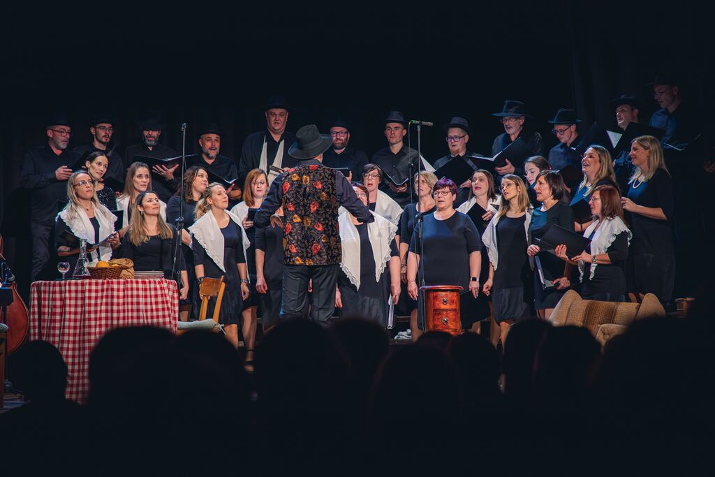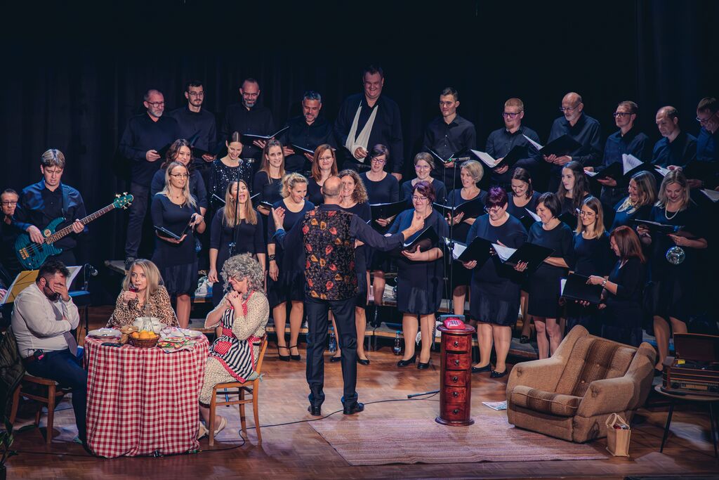 MePZ Leo fortis je tokrat za svoj decembrski koncert združil moči z igralsko zasedbo P.L.I.N. Skupaj smo ustvarili igro s podnaslovom “Čestitke in pozdravi ob kosilu, ki se težko prebavi”. Obiskovalci naših koncertov že kar pričakujejo kako posebnost, saj smo 2023 izvedli odmeven koncert Made in Yugo. Tudi tokrat smo zelo hitro razprodali dvorano in se odločili za še en koncert pred tem. Očitno smo ustrelili v polno. Mama Mija za 70. rojstni dan, z obljubo o velikem razkritju, na nedeljsko kosilo po dolgem času privabi hčerko Marjano in sina Gašperja. Ob goveji juhici na dan priplavajo družinske skrivnosti, pa tudi spomini na skupno življenje, ki zaživijo ob številnih svetovnih uspešnicah. Glasba skupine ABBA, Avsenikov in Yugo uspešnic ob spremljavi pianista Lovra Freliha, tolkalista Bogdana Turnška, kitarista Žana Ograjška in basista Vida Doviča pod taktirko Gregorja Klančiča je poslušalce navdušila in lestvico za prihodnje projekte postavila še višje. Škoda je le, da si društva tovrstne izvedbe zelo težko finančno privoščimo. Podpora kulturi žal ni tako velika, da bi omogočala uresničitev ambicij, ki jih v društvih gojimo in s katero bi uspevali zadovoljevati želje naših poslušalcev.