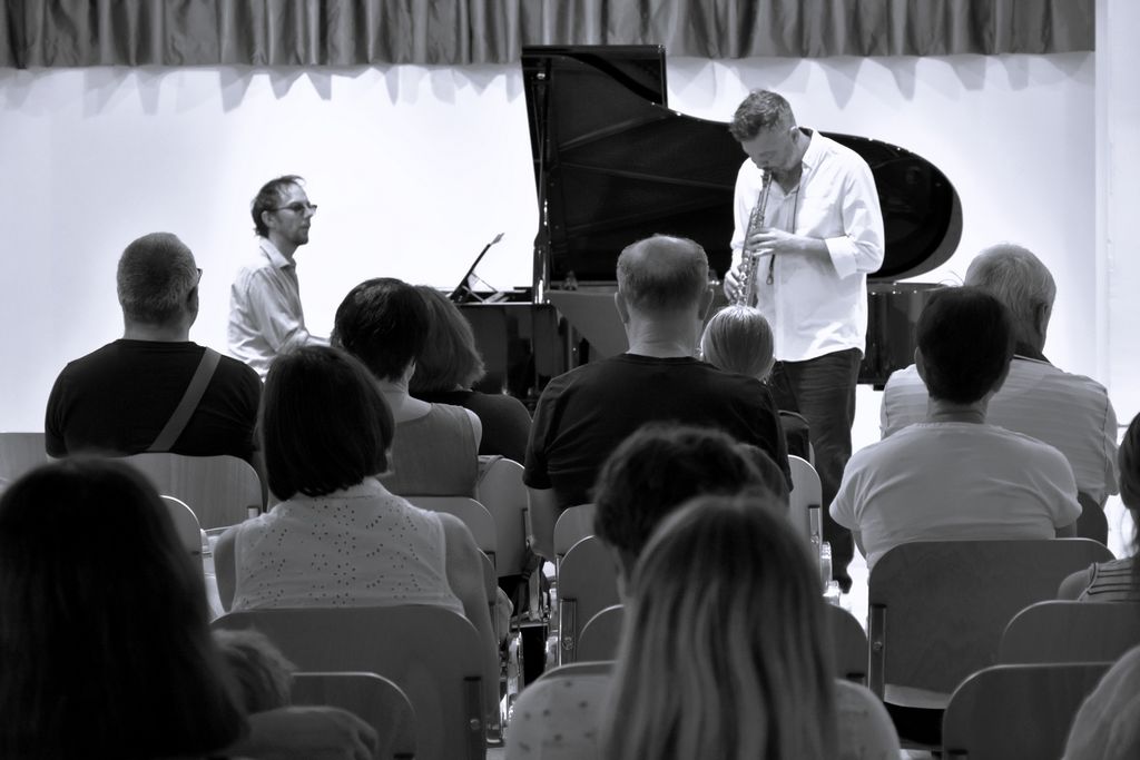 V četrtek, 19. 6. 2025, sta v dvorani Stik nastopila vrhunska slovenska jazz glasbenika, saksofonist Jure Pukl in pianist Marko Črnčec.