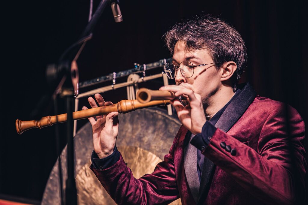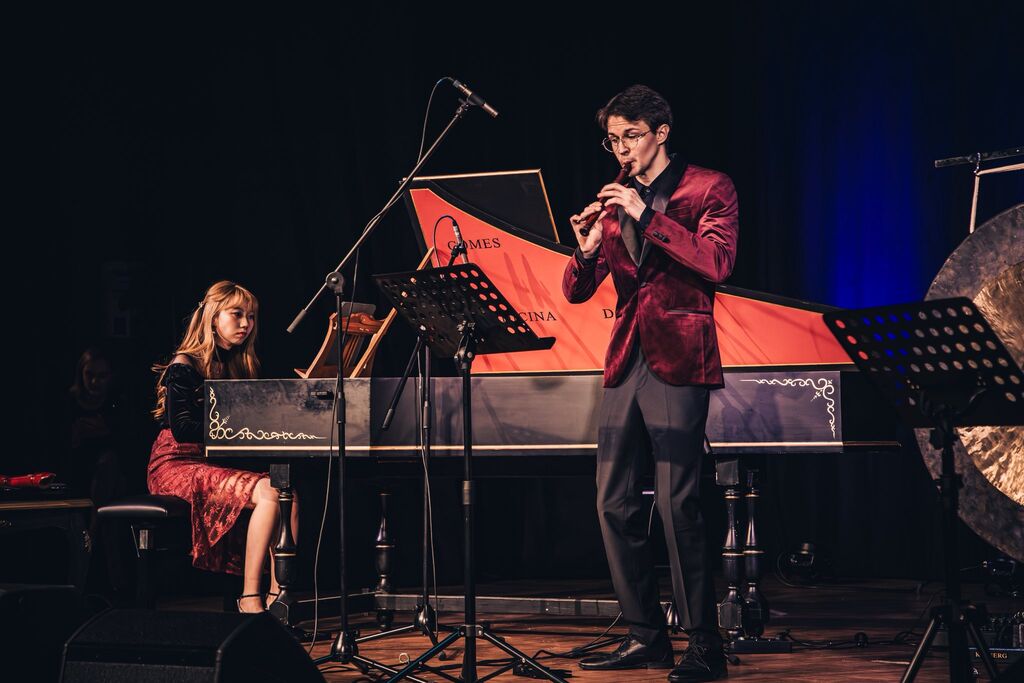 Nepozabno koncertno izkušnjo sta pričarala mlada virtuozna glasbenika, flavtist Erazem Žganjar in pianistka Xianmei Fang, ki sodita med najobetavnejše mlade glasbenike svoje generacije. Kot smo slišali v napovedi Petre Krnc Laznik, namreč kljub mladosti umetnika že posegata po najvišjih mestih na vrhunskih tekmovanjih in osvajata velike odre. Erazem bo 12. aprila nastopil na Festivalu stare glasbe v St. Johannu in izvedel program Vivaldijevih koncertov z baročnim orkestrom, za Inštitut abeceda je lani pripravil solistični recital sodobnih del, na Tednu sodobne glasbe Bled pa je bil umetniški vodja ansambla kljunastih flavt. Xianmei je nastopila v znameniti newyorški dvorani Carnegie Hall, leta 2025 je osvojila tretjo nagrado na mednarodnem Orgelskem tekmovanju Marie Hofer v Kitzbühelu, lani je prejela tudi priznanje Mednarodne poletne akademije Univerze Mozarteum, istega leta je kot organistka nastopila na odprtju salzburškega festivala.