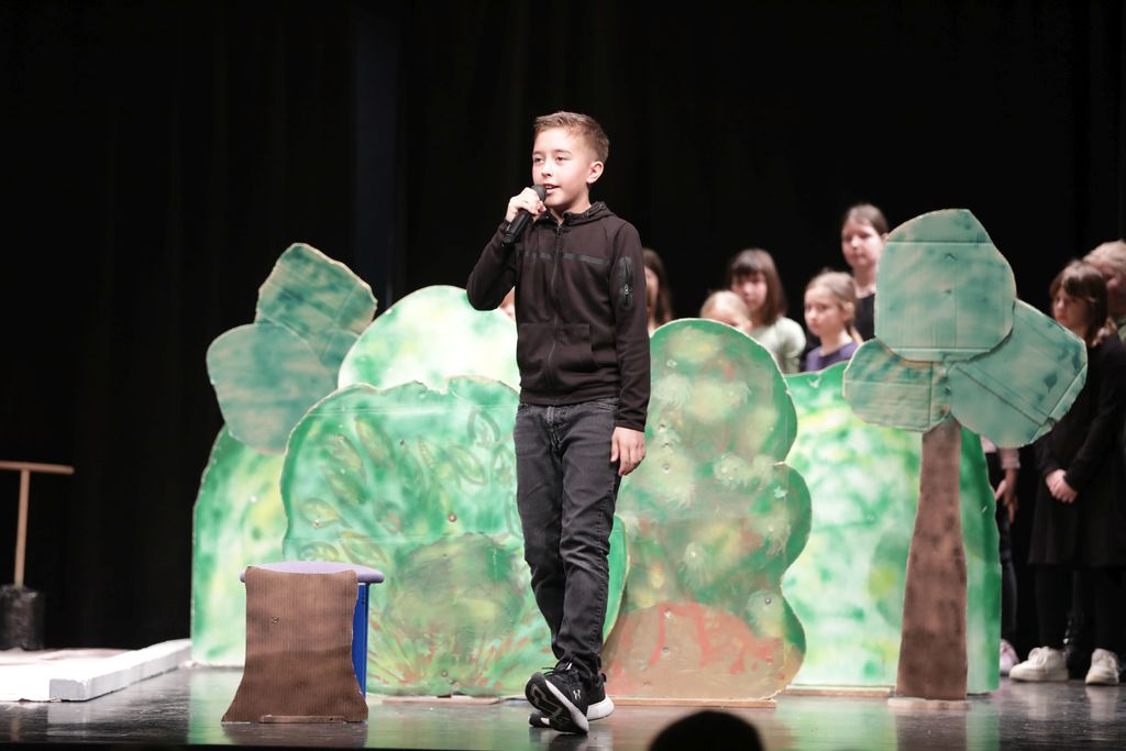 Prvi so se na odru predstavili Muzikalci z OŠ Veliki Gaber, ki so se predstavili z avtorsko predstavo Urške Mitrović O škratu in fantu, ki sta rešila gozd. Na muzikal, katerega osrednje sporočilo je spoštovanje narave, so jih pripravile mentorice Vesna Simonič, Urška Mitrović in Maja Papež.