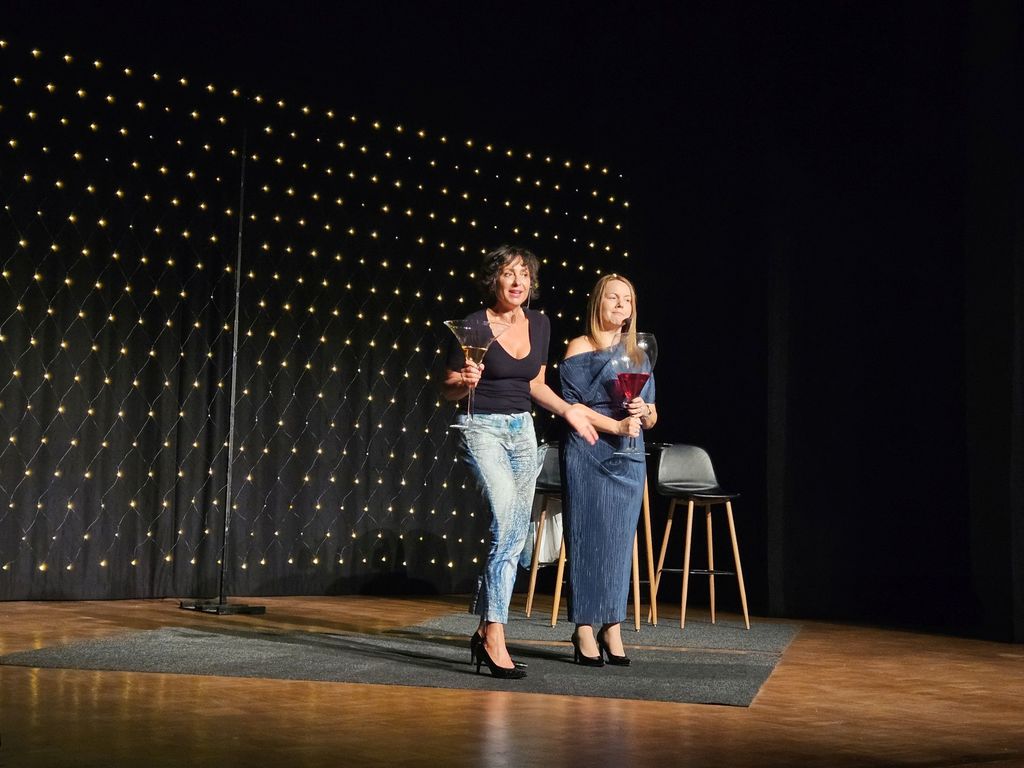 »Na zdravje« je vzklik, ki ga imamo Slovenci najraje. Nazdravljamo tako zagnano, da bi naš narod moral pokati od zdravja. A največkrat predvsem komu poči kakšen živec. Nazdravljanje in zdravje segata na toliko področij, da smo potrebovali kar dve ženski, da sta obdelali vsaj nekatera. Tina Gorenjak in Tanja Kocman sta v prvi predstavi Gledališkega abonmaja TIM posegli v svoje izkušnje, zlorabili svoje spomine in obiskovalcem predstavili svoje zgodbe, ki zaradi resničnosti kričijo po smehu.