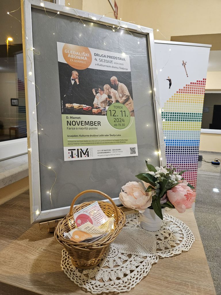 V Kulturnem domu Trebnje so novembra gostili drugo abonmajsko predstavo Gledališkega abonmaja TIM. V goste so tokrat povabili Kulturno društvo Loški oder Škofja Loka, ki so se obiskovalcem predstavili z gledališko komedijo November.