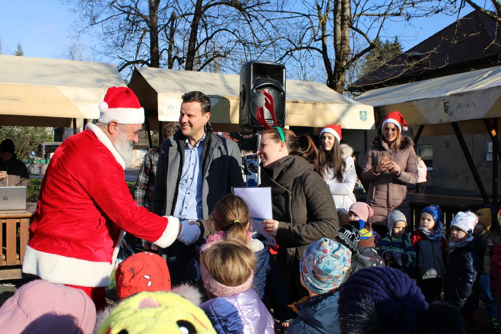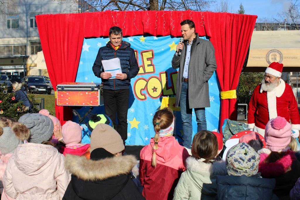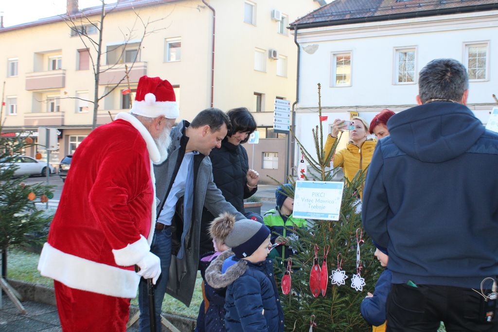 Krasitev smrek je izvajalo skoraj 500 otrok in njihovega spremstva. Po okrasitvi smrek so ogled le teh izvedli čarovnik Jole Cole, Božiček in direktor Občinske uprave Občine Trebnje mag. Janko Zakrajšek, ki sta po ogledu z Božičkom vsem sodelujočim skupinam izročila zahvalo za sodelovanje, vrednostni bon za material za okraske ter bombone. Temu je sledila še predstava čarodeja Joleta Coleta, ki je otroke zelo privabila in navdušila.