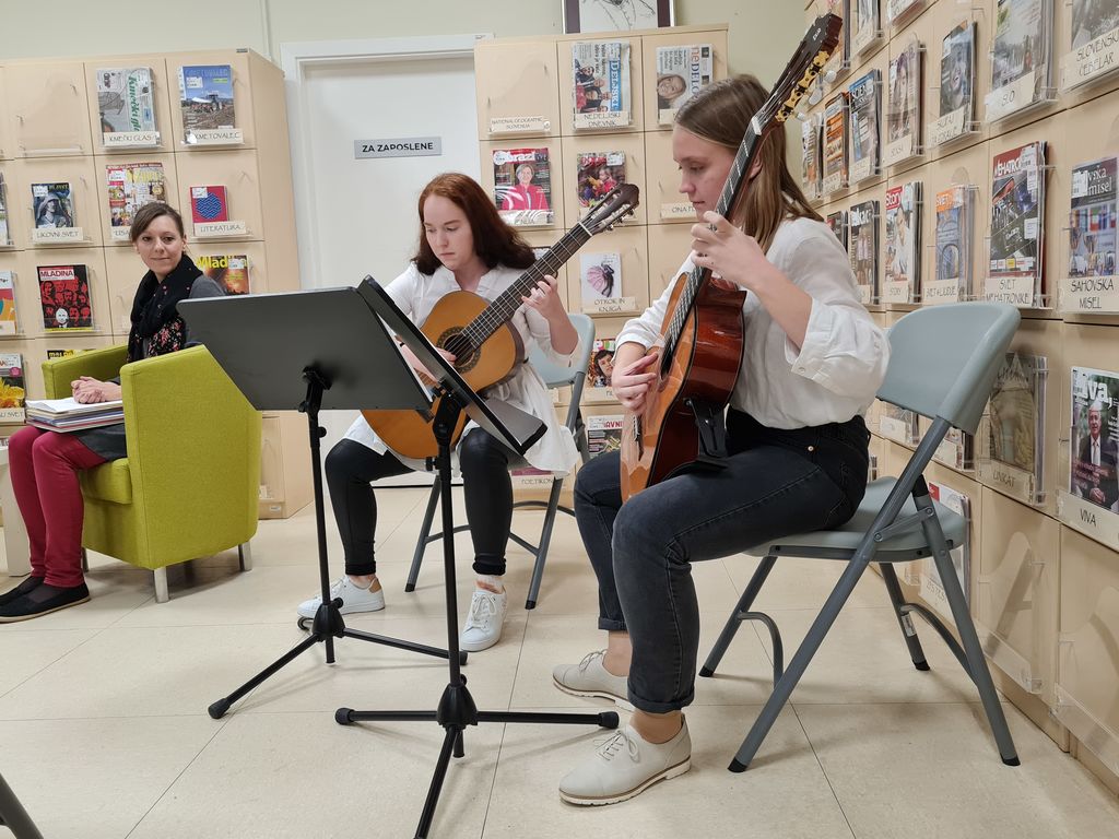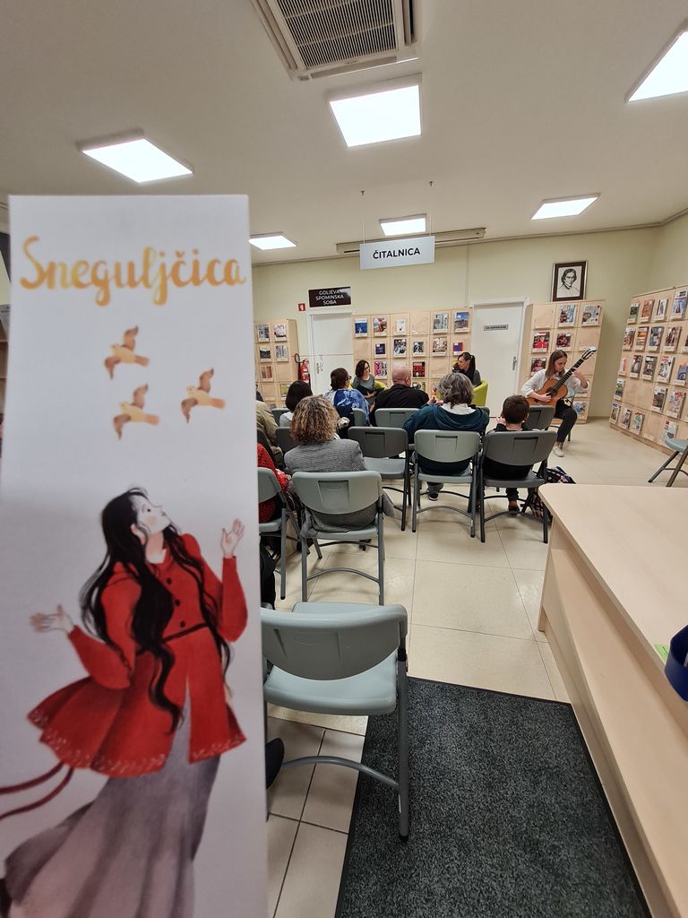 24. 10. 2022 smo z ubranimi notami učenk Glasbene šole Trebnje Damjane Lamovšek in Barbare Škarja otvorili prireditev ob otvoritvi razstave ilustracij Golieve Sneguljčice trebanjske ilustratorke Marte Bartolj.
