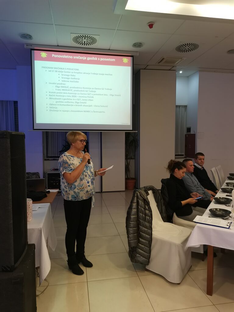 Pred začetkom sta medicinski sestri Centra za krepitev zdravja Trebnje opravljali preventivne meritve krvnega tlaka in krvnega sladkorja. Nato sta predsednica Komisije za članice in predsednik GZT, Olga Smolič in Franc Hrovatič, izvedla uvodne pozdrave, nakar je Olga nadaljevala s poročilo o delu komisije v preteklem letu, njena namestnica Jasmina Pečnik pa je podala načrt aktivnosti za tekoče leto. Poveljnik GZT, Janez Uhan, je prisotne seznanil z akualnimi informacijami v gasilski organizaciji ter s poudarki na letošnjih dogodkih naše zveze. Gasilskim temam je sledilo predavanje Elvise Suhonič, diplomirane delovne terapevtke z več kot 25-letnimi izkušnjami, ki se je v svojem podajanju osredotočila na temo odnosov in komunikacije v kriznih situacijah. Zanimivie izkušnje in dejstva, ki so pritegnile pozornost in razmišljanje prisotnih.