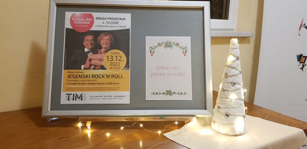 Drugo sezono gledališkega abonmaja TIM so odprli oktobra s člani Gledališke skupine ZIK Črnomelj s komedijo Na kmetih. V prazničnem decembru pa so na odrskih deskah gostili društvi Glasba Drama in SNG Kranj ter njihovo predstavo Jesenski rock'n'roll. V gledališki komediji sta se predstavila Nadja Strajnar Zadnik in Igor Korošec, ki je predstavo tudi režiral. V trebanjskem kulturnem domu sta poskrbela za smeh in dobro voljo.
