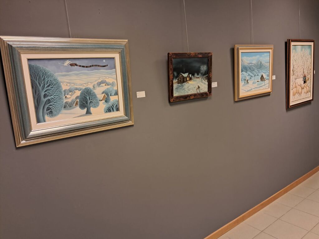Zimska tematska razstava vas popelje v spokojnost zasneženih vasi, kjer se je življenje umirilo in je narava obstala v svoji tišini.