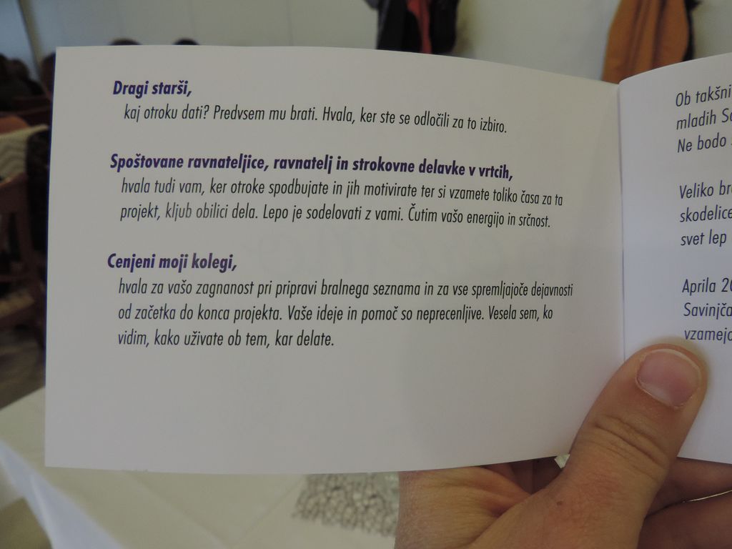 Pogosto je namreč zaznati strah, da utegne zanimanje za knjige postopoma izginiti, če ne bomo k branju spodbujali že najmlajših. Dogodek je potekal kot predstavitev dobrih praks, ki se izvajajo v različnih splošnih knjižnicah po Sloveniji.