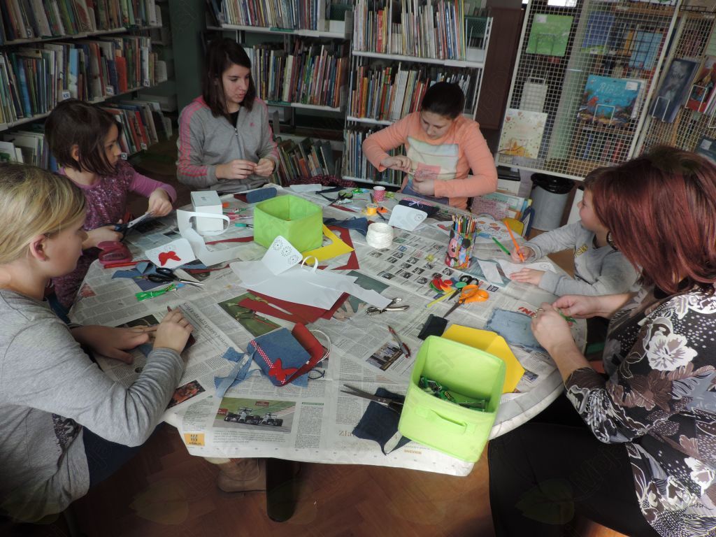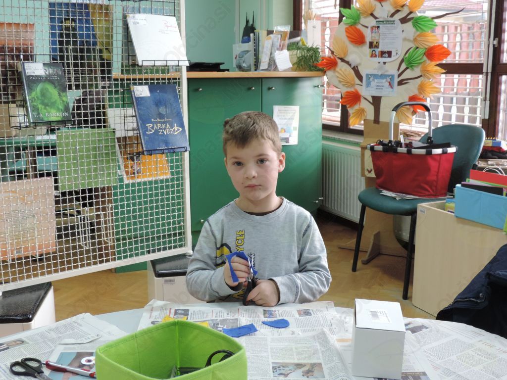 Z osnovnošolci, ki so se nam pridružili na zimskih ustvarjalnih delavnicah, smo izdelovali zanimive izdelke iz naravnih materialov, jeansa in uničenih zgoščenk. Nastale so okrasne sovice iz storžev, torbice iz jeansa in okvirji za slike v obliki polžev. Nismo pa razgibali samo svojih prstkov, ampak tudi svoje telo. Na igrišču smo se igrali stare slovenske gibalne igre, kot je npr. Ali je kaj trden most. Delavnica je potekala v sredo, 16. 2. 2015, od 9 do 12. ure.