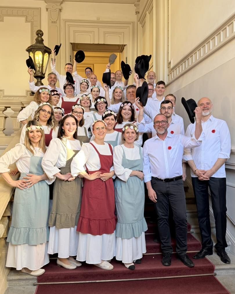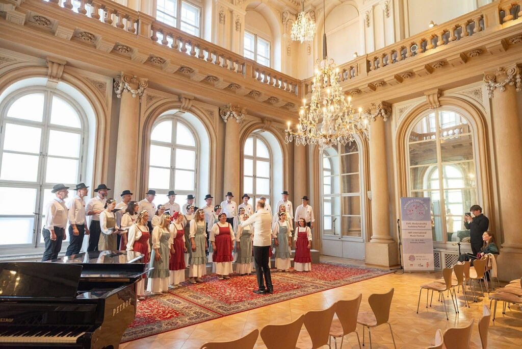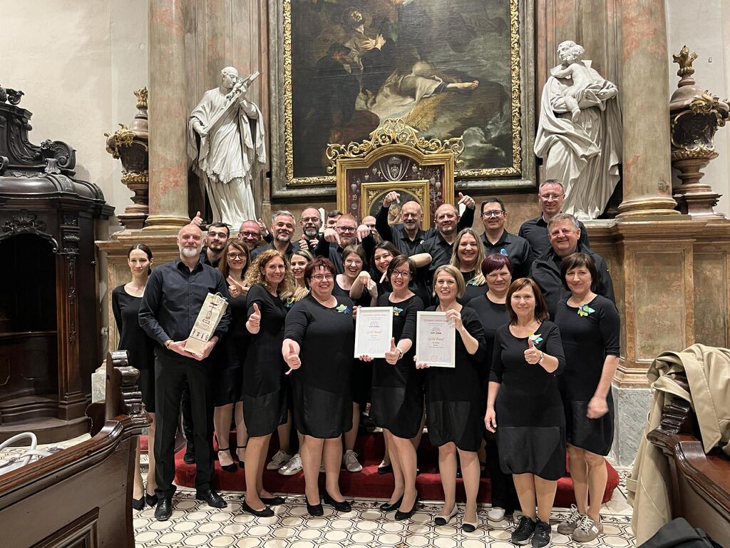 Zbor je tekmoval v dveh kategorijah – v sakralni in ljudski. Tekmovanje je potekalo v Primasovi palači v starem mestnem jedru, v znameniti dvorani ogledal. Pevci so z dirigentom Gregorjem Klančičem predstavili raznolik program z deli Gallusa, Mendelssohna, Runestada in Močnika v sakralnem delu in Močnika, Makorja, Lavrenčiča in Čopija v ljudskem. V Čopijevi priredbi ljudske Da lipa ma! Ke bëj na jë? sta se pevcem s spremljavo pridružila Gorazd Laznik (violina) in Vid Dović (violončelo).