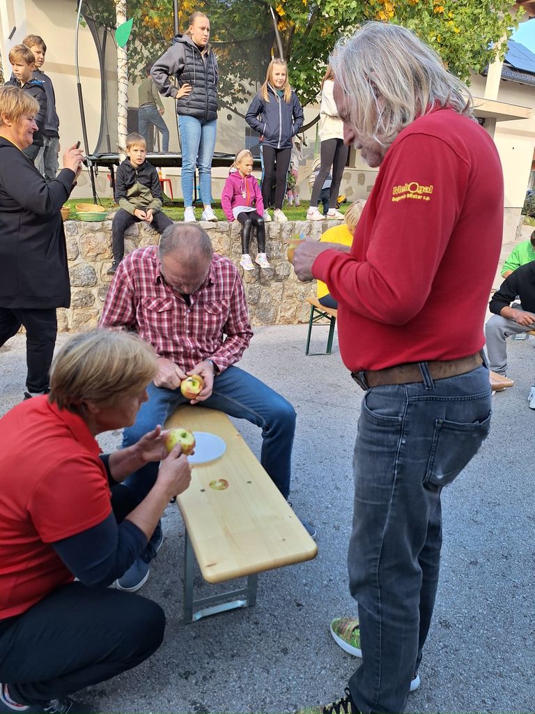 Predsednica KS Čatež Mija Benedičič je tradicionalno podelila sadne sadike najmlajšim v domači krajevni skupnosti – skupno štirim dojenčicam in dojenčkom, ki so na svet prijokali od zadnjega Škreblfesta. Vrhunec festivala pa so bile zabavne igre, v katerih so se pomerile tričlanske ekipe različnih društev. Med drugim so morali biti spretni v medsebojnem prenašanju koruze in merjenju najdaljšega jabolčnega olupka. Na smolo domačinov je laskavi naslov prvakov Škrebelfejst iger osvojila ekipa gostujočega društva VTD Lisec Dobrnič. V prijetnem popoldnevu so, tudi s štrukeljčki, zaznamovali god svetega Mihaela, zavetnika župnijske cerkve na Čatežu.