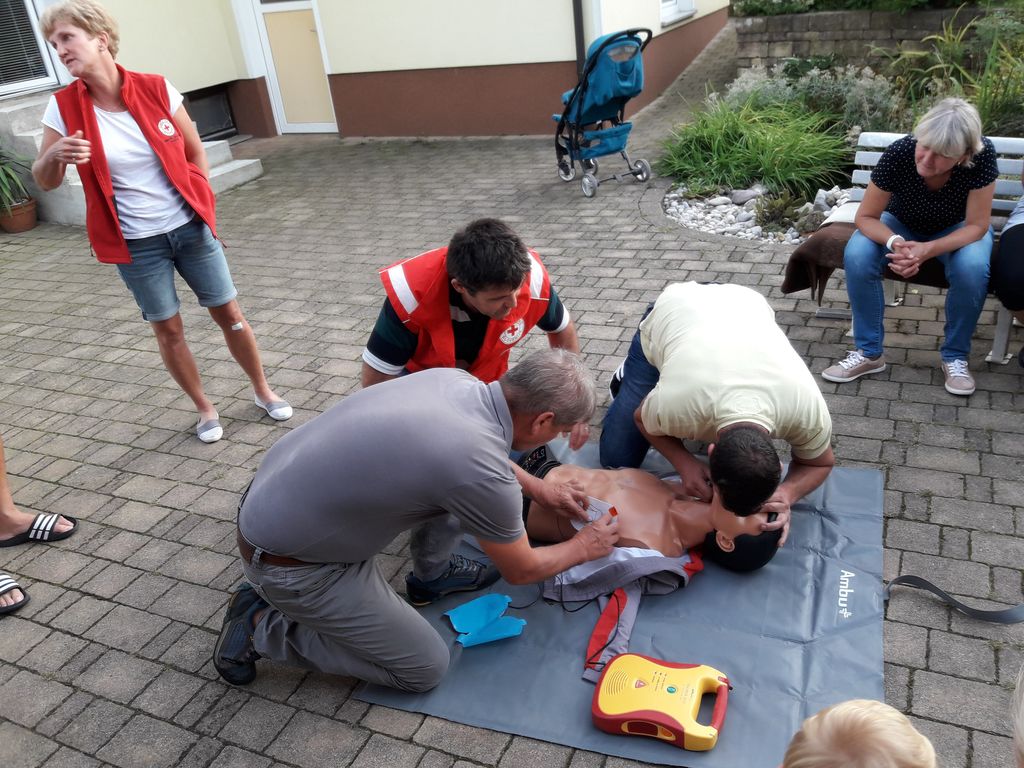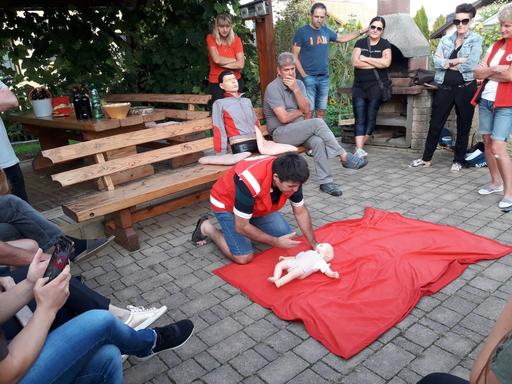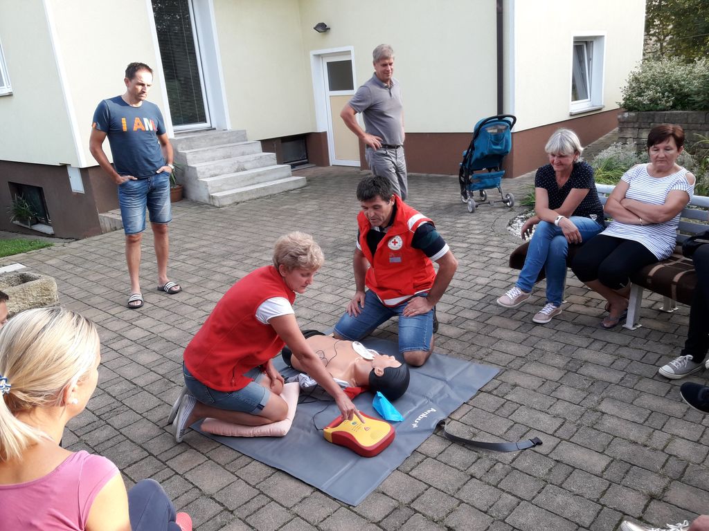 Prebivalci ulice se pogosto srečujemo na različnih praznovanjih, skupaj silvestrujemo in hodimo na pohode, že nekaj časa pa smo se pogovarjali tudi o tem, da bi si radi obnovili znanje prve pomoči. V soboto, 14. septembra, se nas je zbralo 25 sosedov različnih generacij na tečaju oživljanja, ki sta ga organizirala Vlasta in Marjan Rajkovič. Vlasta je patronažna medicinska sestra in predsednica KO Rdečega križa Trebnje, Marjan pa je vodja ekipe prve pomoči. Izvedeli smo, da se v Sloveniji vsak dan zgodijo 4 nenadni srčni zastoji, naučili smo se, kako prepoznamo človeka, ki potrebuje oživljanje, kako izvajamo zunanjo masažo srca in umetno dihanje ter uporabo avtomatskega defibrilatorja. Na koncu smo se naučili še oživljanja dojenčka in malega otroka ter položaj za nezavestnega bolnika ali poškodovanca. Po demonstraciji postopkov smo se vsi lahko tudi praktično preizkusili.