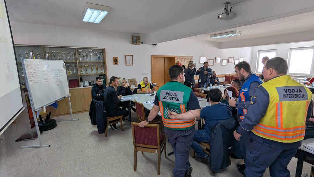 V soboto, 25. 10. 2025 je Civilna zaščita Občine Trebnje organizirala izobraževanje za vse službe in enote, ki so vključene v sistem Civilne zaščite Občine Trebnje. Izobraževanje na temo »Vodenje večjih intervencij – štabno vodenje« je potekalo v prostorih PGD Trebnje, kjer so se operativnim članom Občinskega gasilskega poveljstva Trebnje pridružili še pripadniki občinskega štaba Civilne zaščite Trebnje, Službe za podporo Civilne zaščite Občine Trebnje, predstavniki Območnega združenja Rdečega križa Trebnje, Nujne medicinske pomoči Zdravstvenega doma Trebnje, Doma starejših občanov Trebnje, Policijske postaje Trebnje, županja Mateja Povhe in podžupan Blaž Ovnik. Izobraževanje na temo vodenja večjih intervencij, štabno vodenje, je vodil predavatelj in inštruktor Jure Dolinar, ki je skupaj z občinskim poveljnikom Civilne zaščite Trebnje Vinkom Ribičem, poskrbel, da je bila vsem udeležencem izobraževanja zagotovljena primerna dinamika tako v uvodnem teoretičnem delu, kot tudi v nadaljevanju praktičnega aktivnega štabnega vodenja intervencije večjega obsega. Ob namišljenem dogodku »Obsežno neurje v občini Trebnje« so prisotni zelo dobro sodelovali in se dopolnjevali v aktivnem reševanju posamičnih raznovrstnih dogodkov. Vsi prisotni so v zaključni analizi poudarili, da je bilo izobraževanje na mestu ter da si tovrstnih izobraževanj v živahnejši dinamiki aktivnosti dogodkov želijo tudi v prihodnje.