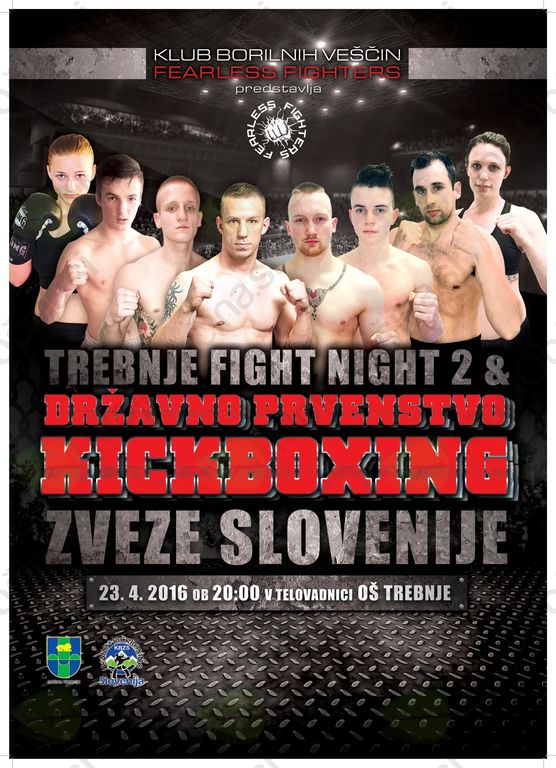 Le streljaj stran, v Športni dvorani OŠ Trebnje, pa se bo celo soboto odvijalo tudi državno prvenstvo Kickboxing Zveze Slovenije, in sicer za discipline Point Fight, Kick Light in FINALE ring disciplin Full Contact, Low Kick in K1-r. Organizacijo zanimivega športnega dogodka je letos prevzel Klub borilnih veščin Fearless Fighters oziroma Alen Štritof, evropski prvak v Kickboxingu (K1), s podporo Občine Trebnje. Ogled borb v sklopu prvenstva je popolnoma brezplačen. Večer pa bomo zaključili z borilnim spektaklom Trebnje Fight Night 2 s pričetkom ob 20. uri na isti lokaciji: pričakujemo 5 razburljivih profesionalnih dvobojev po pravilih K-1 in približno 5 amaterskih borb po K-1r pravilih.