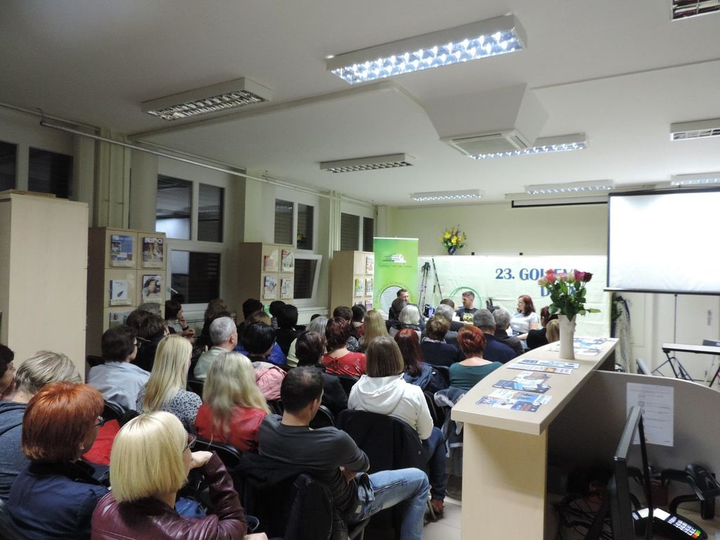 Leto 2018 pa je bili v Občini Trebnje razglašeno za Leto zdravja, gibanja in športa, zato smo tudi našo bralno značko za odrasle, Bralna potepanja, obarvali športno. Bralno značko je opravilo 110 odraslih bralcev, na kar smo zelo ponosni. Tudi gosta, stand up komik Perica Jerković, in ekstremni kolesar Boris Praznik, sta povezana s športom, humorjem in knjigami. Vse to smo združili v celoto in prisluhnili prijetnemu pogovoru z našima gostoma Perico Jerkovićem in Borisom Praznikom, ki ga je vodila bibliotekarka Simona Lužar. Večer je s prijetno glasbo spremljala skupina Eni od sedmih milijard, bibliotekarka Irena Palčar pa je zaslužna za prijetno in hudomušno vodenje večera.