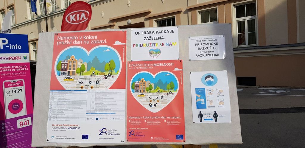 Pridružili smo se aktivnosti PARK(irni) dan, le da je pri nas ta dan trajal cel teden. Parkirišče pred občinsko stavbo v centru mesta smo spremenili v prijeten park, ki je bil letos obogaten z novimi cvetličniki in igrami za obiskovalce. Največ obiska je bila zagotovo deležna XL igra Štiri v vrsto, ki je obiskovalcem na zabaven način prikazala možno alternativno rabo parkirnih prostorov v mestu. Ob parku je svoje mesto zasedlo podjetje PAN JAN d.o.o., ki je obiskovalcem podajalo informacije o obeh razstavljenih električnih vozilih KIA E-Niro in ŠKODA Eniaq, z njihovo pomočjo pa smo izvedli tudi nagradni kviz »Spodbujamo trajnostno mobilnost«.