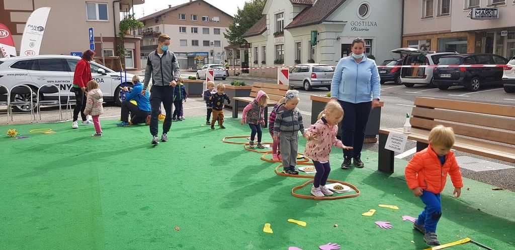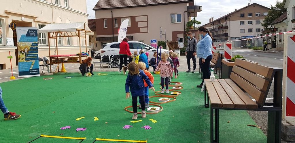 Center za krepitev zdravja Trebnje in Knjižnica Pavla Golie Trebnje sta 16. in 21. septembra za najmlajše v začasnem parku pripravila poligon »Nasveti za zdravo življenje« in pravljične urice »Živim zdravo. Potujem trajnostno.« Skozi aktivnosti se je najmlajše ozaveščalo tako o pomenu zdravja in fizične aktivnosti kot tudi o varnosti v prometu na njim prilagojen način. 17. in 20. septembra nam je nekoliko ponagajalo vreme, zato so najmlajši svojo vlogo kot pešci v prometu v sklopu delavnic »Po parku tekam, skačem in se plazim, po pločniku pa mirno hodim in na promet pazim« vadili kar v športni dvorani Top Gym.