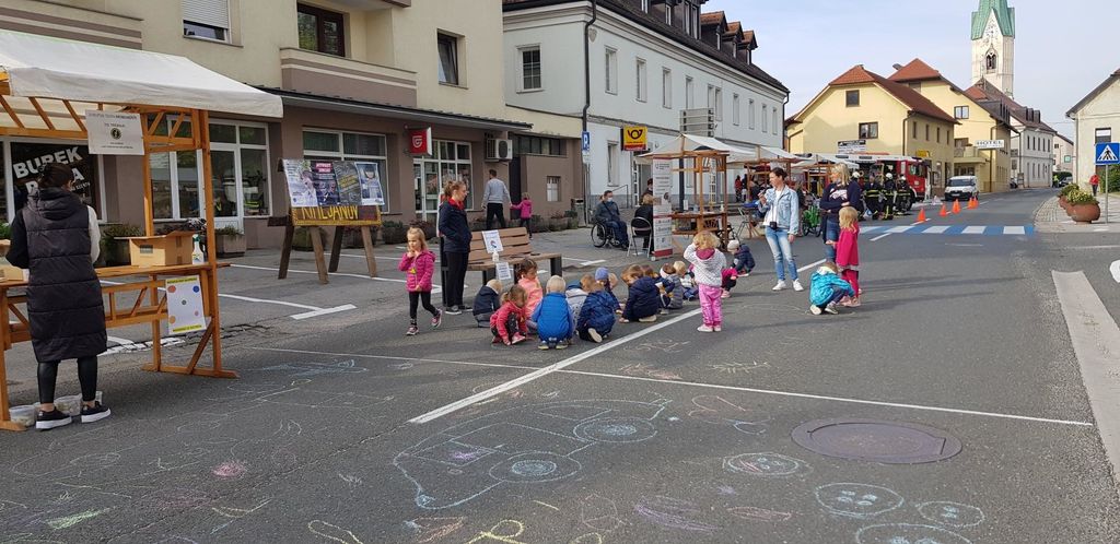 Na Dnevu brez avtomobila smo PARK izpred občinske stavbe razširili na celotno površino Golievega trga, ki so jo s svojimi dejavnostmi in predstavitvami zapolnili Top Gym, Knjižnica Pavla Golie Trebnje, Center za krepitev zdravja, novost v letošnjem letu pa sta bili tudi delavnici v izvedbi TIC Trebnje - TIC-ove igrarije in animirana Ustvarjalna delavnica risanja s kredami. Pridružili so se nam še Policijska postaja Trebnje, Prostovoljno gasilsko društvo Trebnje, Društvo paraplegikov Dolenjske, Bele Krajine in Posavja, člani Prostoferja ter Moto Klub Kamerad. LAS STIK je na ta dan izvajal predstavitev projekta Kolesarska veriga na podeželju, pridružilo pa se nam je tudi podjetje MM IBIS d.o.o, ki je predstavilo električna kolesa, ki bodo za izposojo kmalu na voljo tudi na štirih postajah v Trebnjem. Udeleženci dogodka so električna kolesa z veseljem preskušali na varnih površinah zaprtega dela ceste.