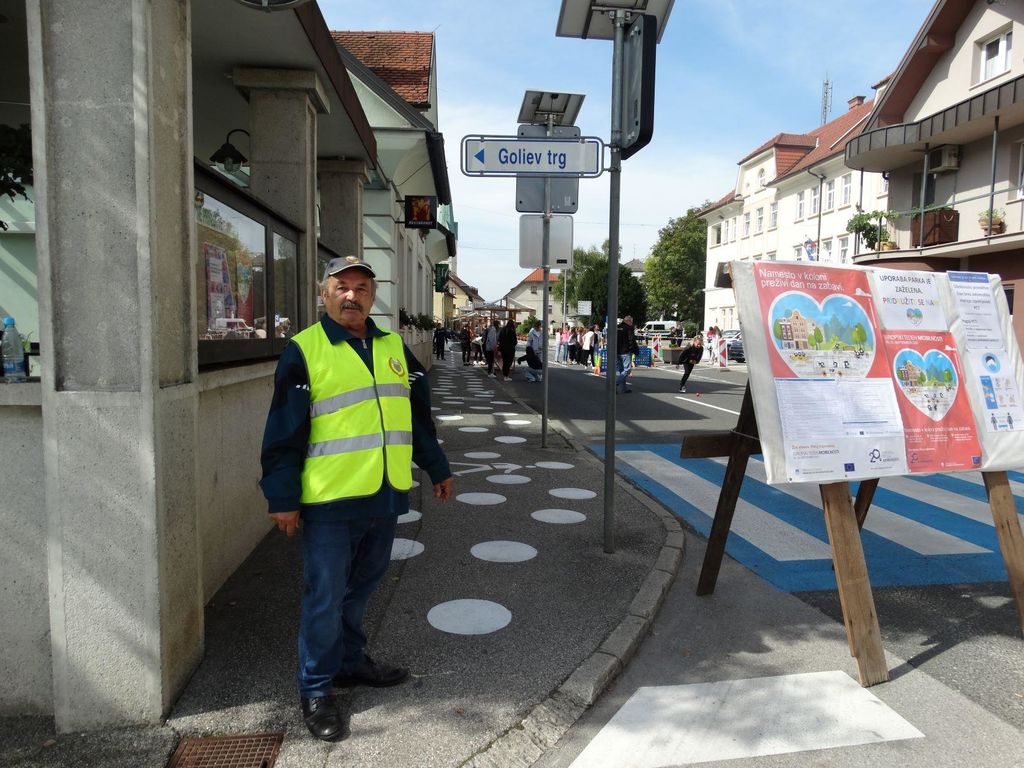 Pobliže smo spoznali tudi izvedeni ukrep umirjanja prometa v centru Trebnjega, katerega namen je omogočiti udejanjanje trajnostne mobilnosti z izboljšanjem varnosti pešcev v prometu, saj lahko sedaj ljudje v centru varneje premagujejo razdalje s hojo.