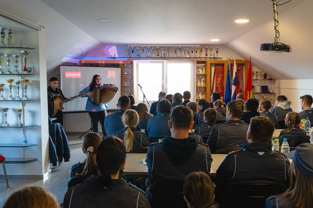 Z glasbo sta 24. zbor MK GZT začela in tudi zaključila gasilca PGD Občine Manca Trlep na harmoniki in njen brat Miha na kitari.