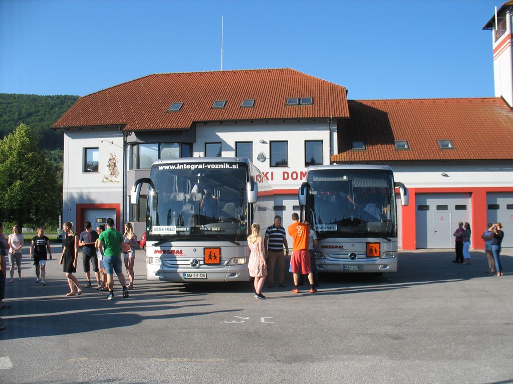 Danes zjutraj sta dva Integralova avtobusa po postajališčih pobrala 85 udeležencev prve skupine mlajših, pridružili so se jim tudi mentorji, ki bodo njihovo spremstvo na poti. V Trebnjem so v oba avtobusa tudi malico, da bodo lažje zdržali na poti do prihoda v tabor.