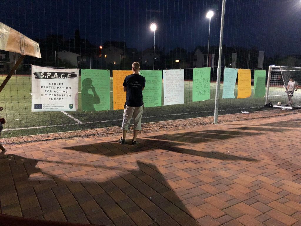 Pridružili smo se ekipi »Petkanja« v Športnem parku Trebnje, kjer so v zadnjih poletnih žarkih ob dobri hrani in pijači uživali zbrani krajani. Ulično debato smo spodbudili z že razstavljenimi mnenji oziroma odgovori na vprašanje »Kako pomembna je zate Evropa?« Odgovori in pogovori z mimoidočimi so spodbudil nadaljnjo debato, ki je postregla z izmenjavo mnenj ter razmislekom o dojemanju Evrope kot kontinenta in Evrope kot Evropske unije. Zbrane odgovore udeležencev v debati smo dopisovali na plakate ter jih sproti obešali poleg že zbranih.