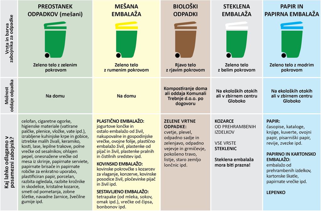 Občane preventivno opozarjamo, da dosledno ločujejo komunalne odpadke in jih prepuščajo v namenske zabojnike. Odlaganje odpadkov v okolje oziroma izven (ob) zabojnikih je prepovedano. Tako odlaganje odpadkov omogoča brskanje živali po smeteh, nenadzorovan raztros odpadkov po okolju, smrad in kvari videz naselja.