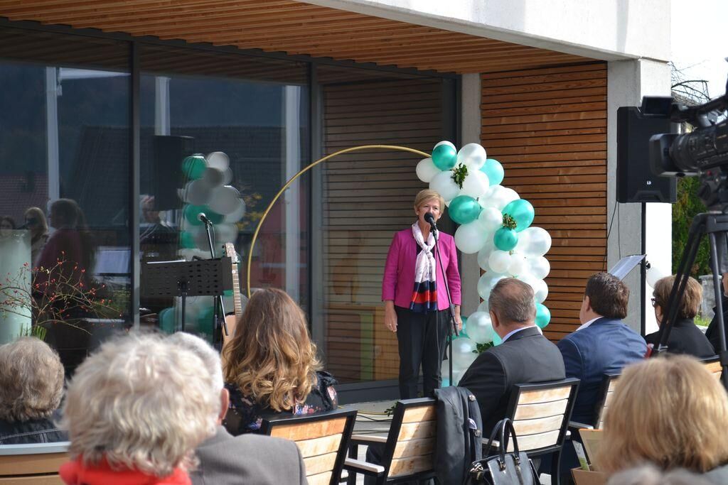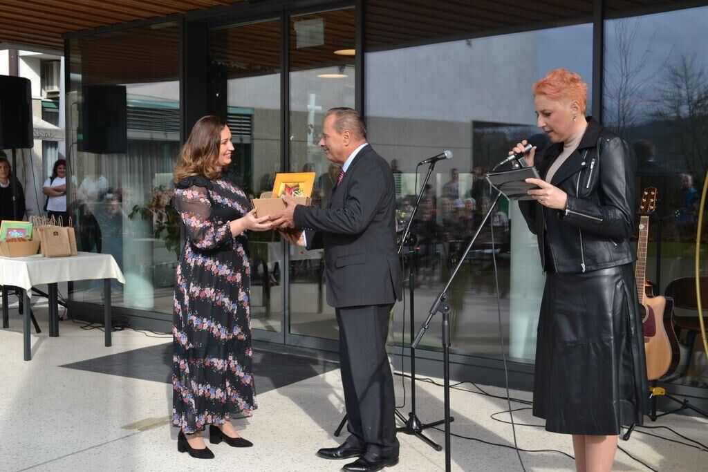 Zbrane je nagovorila direktorica Doma starejših občanov, ga. Petra Kušar Stojakovič: »Današnji dan je za naš Dom poseben in dragocen dan, saj bomo slovesno otvorili nov dnevni center Doma starejših občanov Trebnje. V novih prostorih so bo izvajala sodobna oblika pomoči vsem starejšim, ki še živijo doma in si želijo nekaj ur dnevno preživeti v družbi ali potrebujejo le občasno pomoč in pozornost. Morda težje skrbijo zase in jim hišna ter gospodinjska opravila vzamejo preveč moči ali pa se morebiti počutijo osamljene. Dnevni center bo nudil možnost za aktivno preživljanje prostega časa, gibalne aktivnosti, aktivnosti z namenom ohranjanja kognitivnih sposobnosti, sprostitvene, kulturne, umetniške in druge kreativne aktivnosti. Na potrebe starejših se bomo odzivali tudi v prihodnje z nudenjem kakovostne oblike pomoči in na zaupanju ter veri v ljudi gradili pristne osebne odnose. Zavzemali se bomo tudi za medgeneracijsko povezanost z lokalnim okoljem in različnimi ustanovami.«