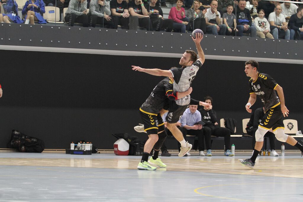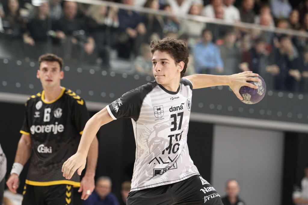 Parket nove športne dvorane so nato zavzeli rokometaši. Po odličnem začetku Trebanjcev je kazalo, da bo tekma odločena že do polčasa, a so borbeni gostje pokazali zobe in tri minute pred koncem prvega dela izenačili na 14. točki. Med premorom je gledalce s svojimi hiti zabavala pevka Alya, ki je poskrbela za energičen uvod v drugi del tekme. Domači rokometaši so v nadaljevanju tekem še bolj strnili svoje vrste in s čvrsto obrambo pobegnili na 21:14. Ko je Jan Jurečič četrt ure pred zadnjo sireno zadel prazno velenjsko mrežo za vodstvo s 27:18, je bilo vsem jasno, da bo zmaga ostala doma. Navijači so rajali na tribunah in se veselili novega uspeha njihovih ljubljencev.