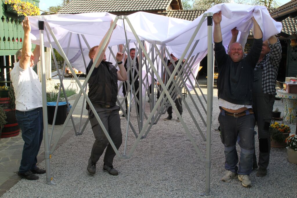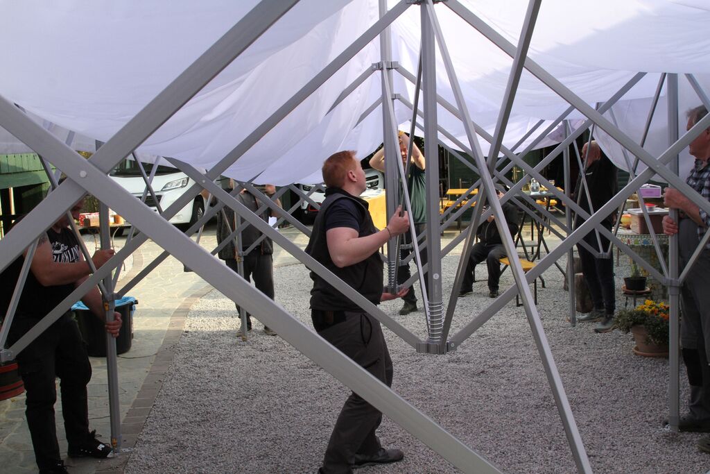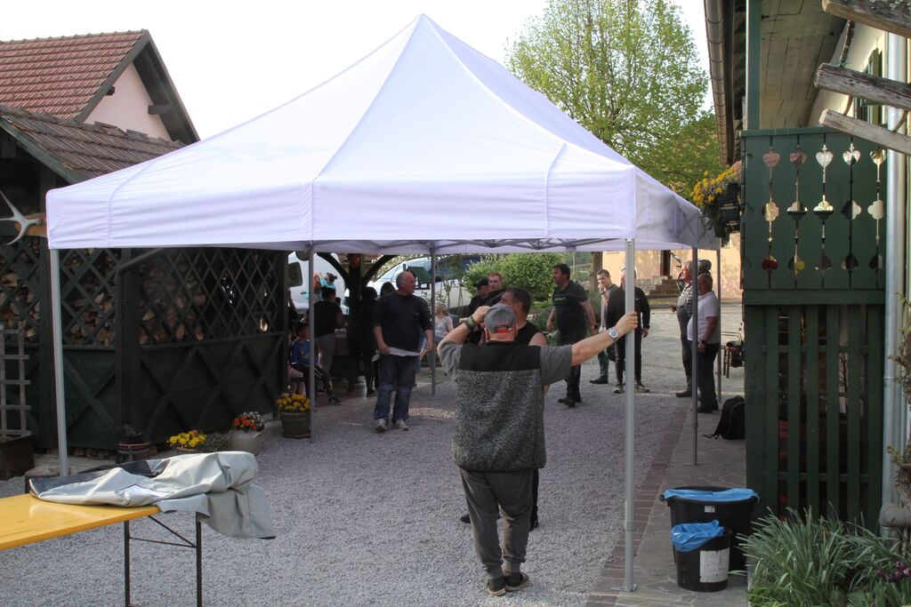 Paviljona so v petek popoldan testno postavili pri Rozinatovih, pri čemer se je zbralo lepo število vaščanov, kar je znova potrdilo njihovo povezanost in aktivnost. Prav ta povezanost je bila tudi glavni razlog za predlog projekta.