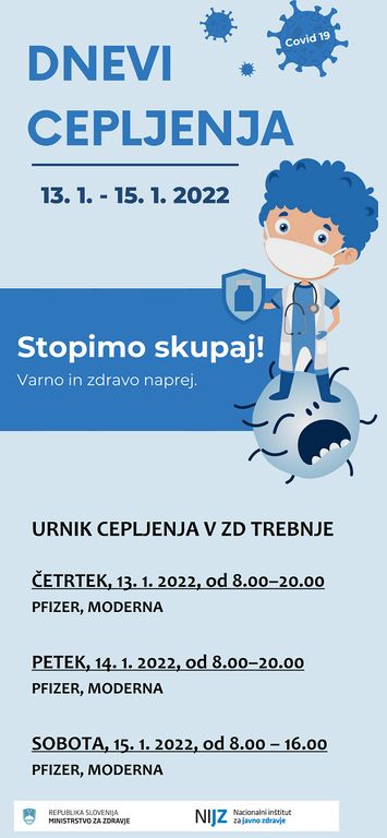 Po uspešno zaključeni prvi akciji »Dnevi cepljenja« Ministrstvo za zdravje skupaj z zdravstvenimi domovi in občinami organizira ponovitev akcije, ki bo tokrat potekala med 13. in 15. januarjem 2022.